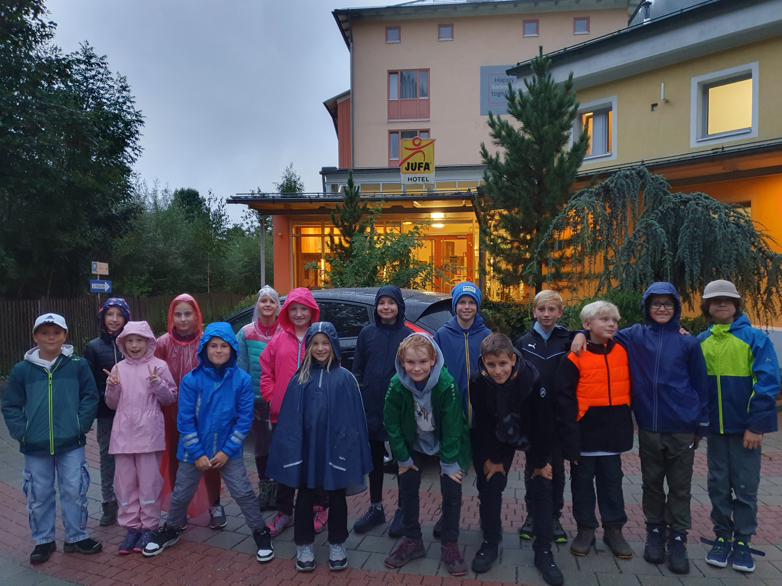 Vom 10 . bis 12. 9. 2025 verbrachten die 4a, b, c aufregende Projekttage im JUFA Veitsch in der Steiermark. Wir brachen bei schönem Wetter in der Früh in Stockerau auf, doch leider begann es schon bei der Hälfte des Weges zu nieseln. Das änderte sich auch nicht bei unserer Ankunft. Wir ließen uns jedoch nicht entmutigen und starteten gleich nach einem köstlichen Mittagessen mit „team experience“ – Aufgaben vom Alpenverein. Trotz starken Regens beendeten wir den Tag sogar mit einem Lagerfeuer.