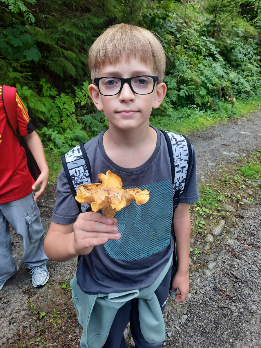 Bei Kaiserwetter am nächsten Tag wanderten wir – unterbrochen durch viele Spiele, Teamaufgaben und „Waldchallenges“ (Bauen eines Dorfes bzw. einer Kugelbahn mit Waldmaterial, Verstecken, Wald mit allen Sinnen erleben, etc.) zum Pilgerkreuz auf ca. 700m Höhe. Den Tagesausklang verbrachten wir im hoteleigenen Hallenbad.
